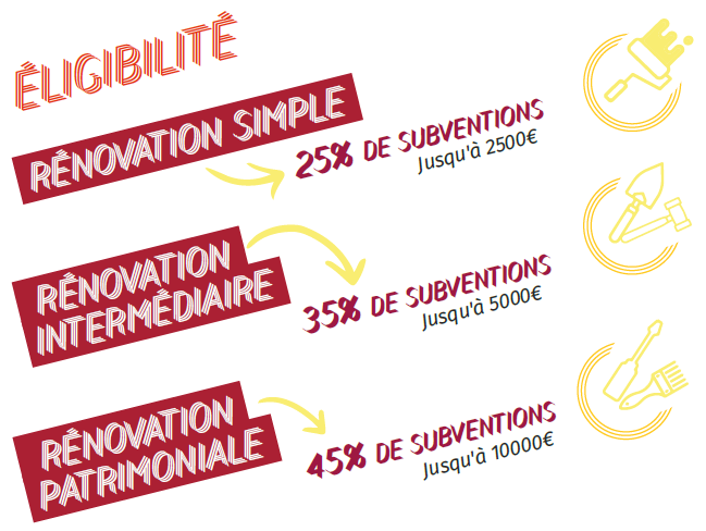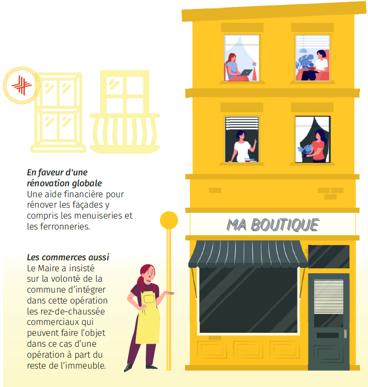 Il s'agit d'un dispositif d'aide au ravalement de façades mais également lors de restauration ou restitution d'éléments remarquables extérieurs d'un immeuble. Les rez-de-chaussée sont également concernés.