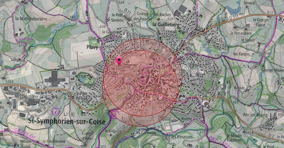2. Entrez SAINT-SYMPHORIEN-SUR-COISE dans la recherche et/ou plus précisément votre rue afin de vérifier si votre maison est dans le secteur protégé.
